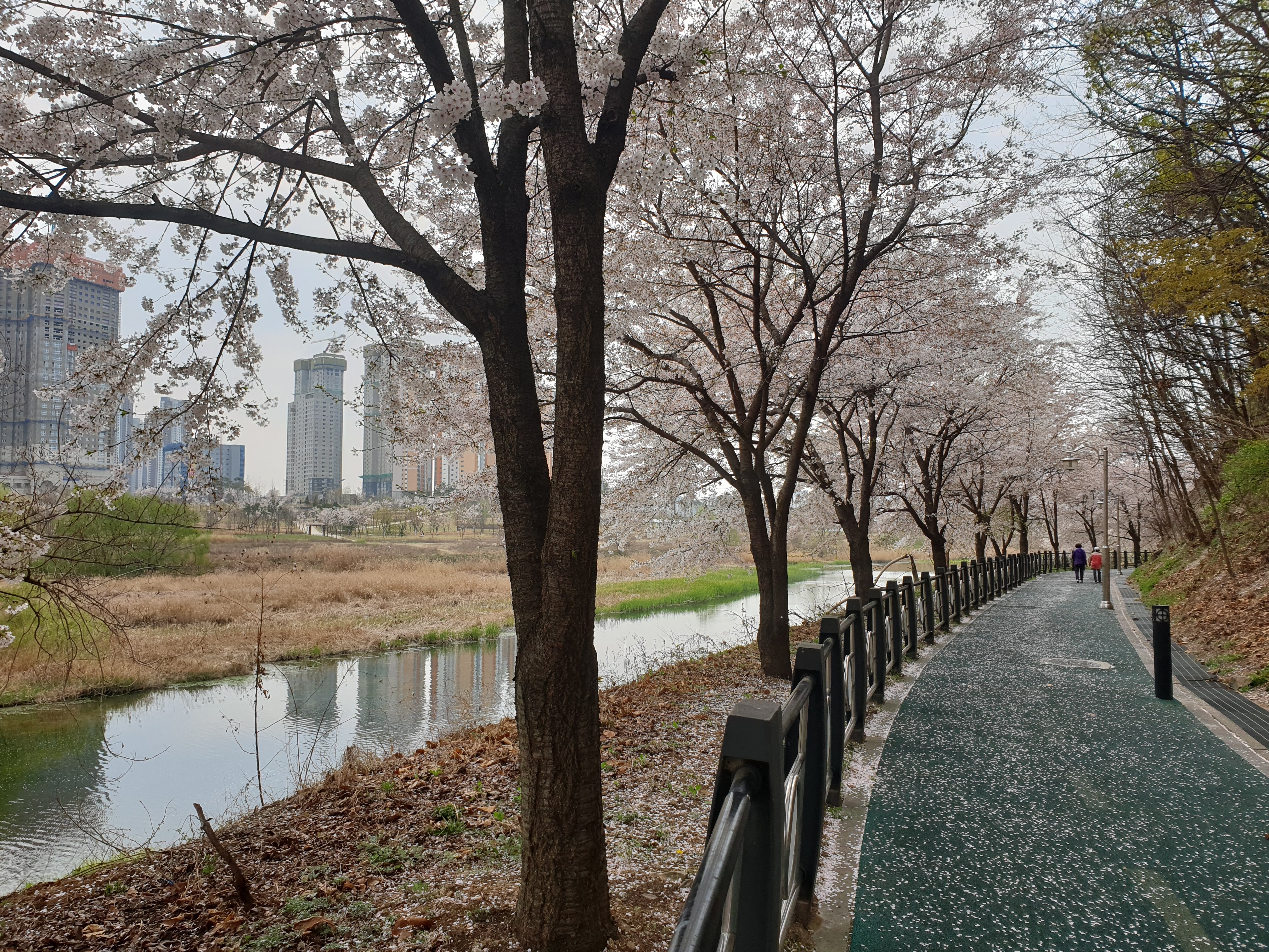 오산천의 아름다운 산책 코스, 벗꽃이 활짝 폈습니다.