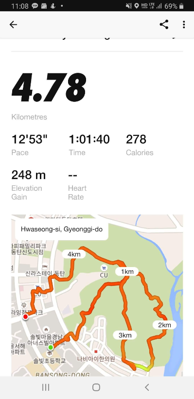 주말을 집에서만 보내다가, 점심 시간을 이용해 우연히 산책을 시작하게 되었습니다. 약간의 등산이 가미된 등산 코스!