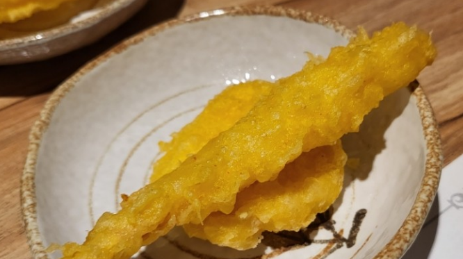 스시를 먹고, 우와 배부르다 할 때쯤 튀김이 나온다. 그 이후로 먹을 것이 계속 나옴.