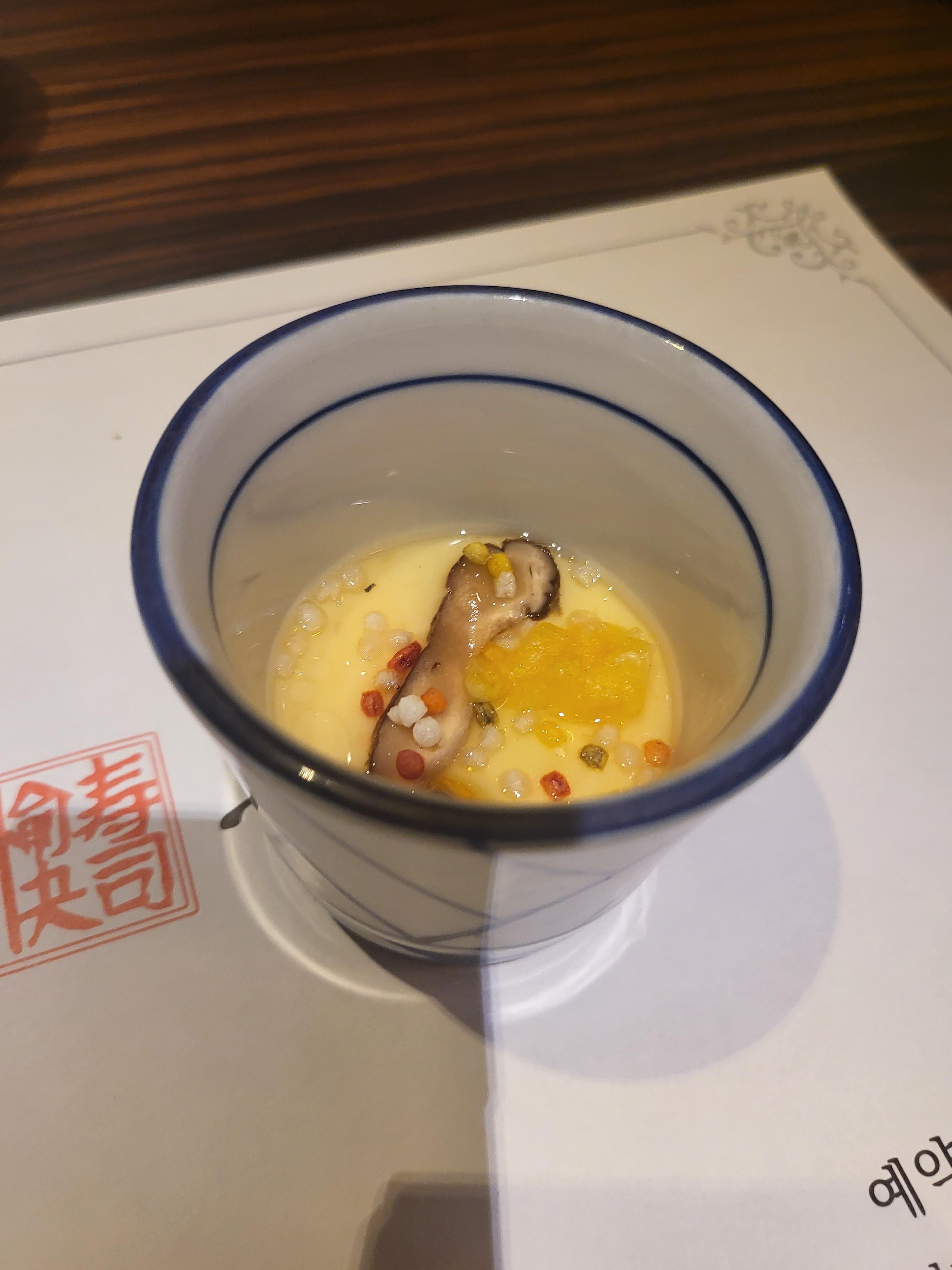 에어컨이 시원하게 나오는 방에서 첫번째 나온 음식은 빈속을 달래는 일본식 계란탕.